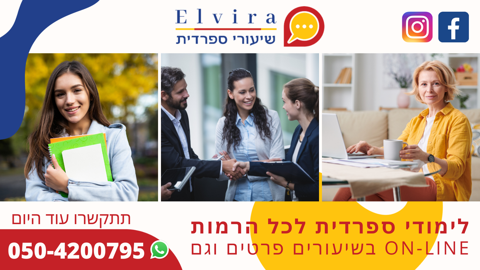 שמי אלוירה דביר מורה לספרדית. ילידת בקולומביה. בנוסף גרתי באקוואדור ומקסיקו במסגרת שליחויות עם משפחה. בשיעורים נלמד את השפה ונכיר את המנהיגים והתרבות הלטיני באווירה נעימה. השיעורים מתקיימים בצורן גם ON LINE בזוום. משף השיעור שעה אחד. יש אפשרות לשעה וחצי. לפרטיים נוספים אשמח אם תצרו איתי קשר.