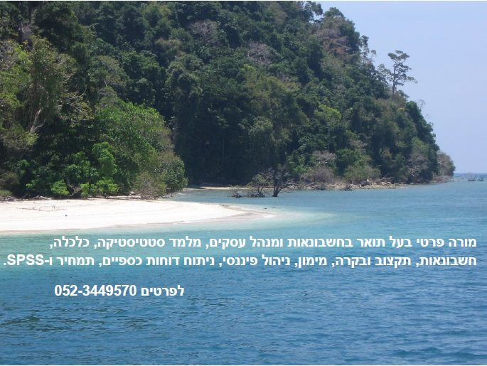 מורה פרטי סבלני מאוד בעל ניסיון של כ12שנים מלמד סטטיסטיקה, כלכלה (מיקרו, מקרו, וכלכלת ישראל), חשבונאות (פיננסית וניהולית), תקצוב ובקרה, מימון, ניהול פיננסי, ניתוח דוחות כספיים, תמחיר ו-SPSS. מלמד בהרצליה יחידים וקבוצות, בכל הרמות.052-3449570